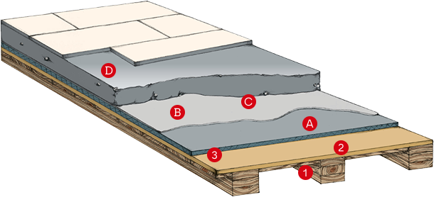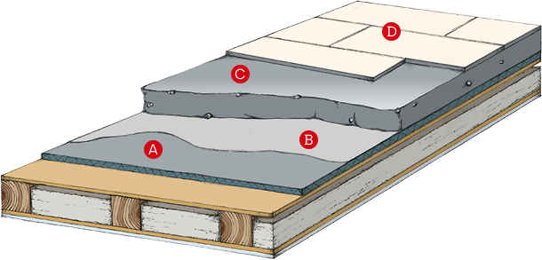 Deckenaufbau in sichtbarer Ausführung.