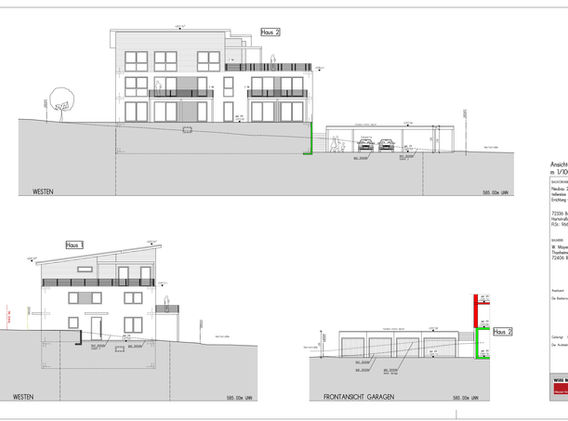 Mehrfamilienhaus mit teilweise gewerblicher Nutzung, Errichtung von Garagen und Carports.