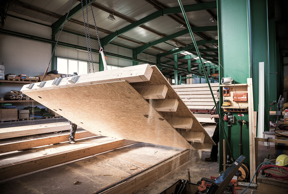 Die flexible Struktur erlaubt individuelle Lösungen: Ob sichtbare Holzoberflächen, mineralische Fassaden oder eine Kombination mit Massivholz – unsere Bauweise bietet maximale Gestaltungsfreiheit. So lassen sich auch Massivholzelemente nahtlos in das Holzskelett integrieren – vorgefertigt in unseren modernen Werkshallen für höchste Präzision und kurze Bauzeiten.