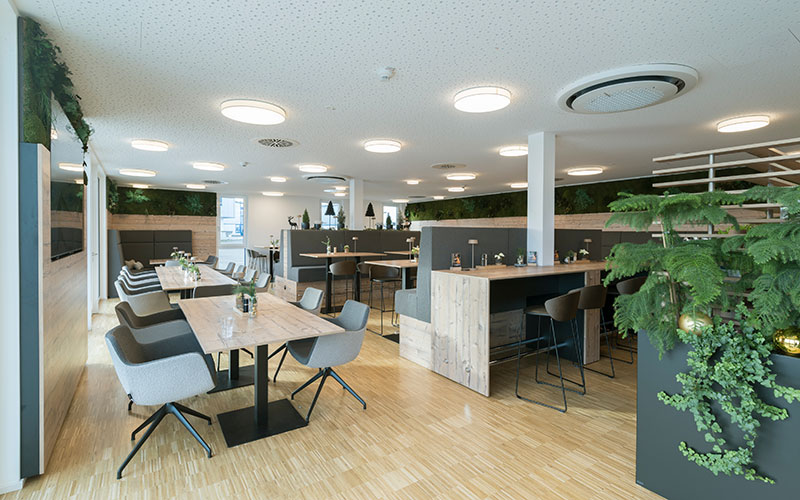Auch wenn es um gewerbliche oder öffentlich genutzte Objekte geht, bietet Holz überzeugende Vorteile. Vor allem reduziert es die Kosten und steigert die Rendite – und zwar in mehrfacher Hinsicht. Zum einen schon beim Bau oder der Modernisierung, denn mit Holz kann sehr schnell gebaut werden. Das spart nicht nur Arbeitszeit, sondern auch Mietkosten für bisherige Räume, die schnell gekündigt werden können. Und auch nach dem Einzug entlastet Holz spürbar die Bilanz: denn durch das gesunde Raumklima und die energieeffizienten Eigenschaften muss im Winter kaum geheizt und im Sommer weniger gekühlt werden.